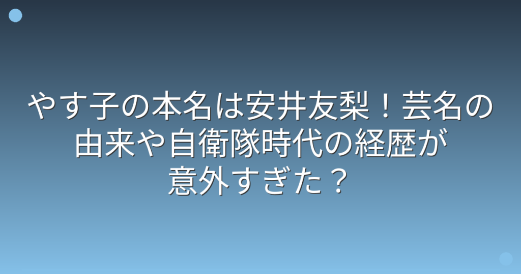 やす子の本名は安井友梨!芸名の由来や自衛隊時代の経歴が意外すぎた?
