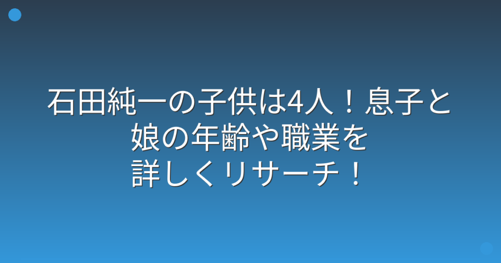 俳優の石田純一さんの子供について、ファンの間で話題になっていますね。 石田純一さんは複数回の結婚歴があり、お子さんも複数いらっしゃることで知られています。 そこで今回は、石田純一さんの子供は何人いるのか、息子さんや娘さんの年齢や職業につい... -