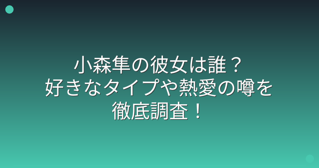 小森隼の彼女は誰?好きなタイプや熱愛の噂を徹底調査!