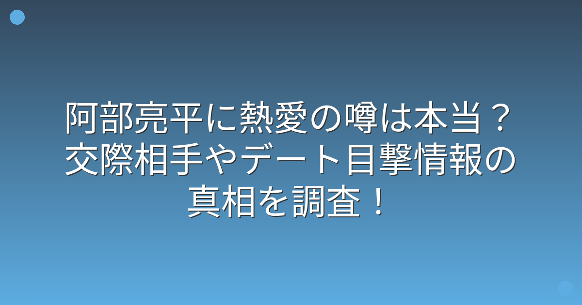 阿部亮平さんの熱愛については、現時点で信頼できる交際報道は確認されておらず、具体的な交際相手の存在も明らかになっていません。