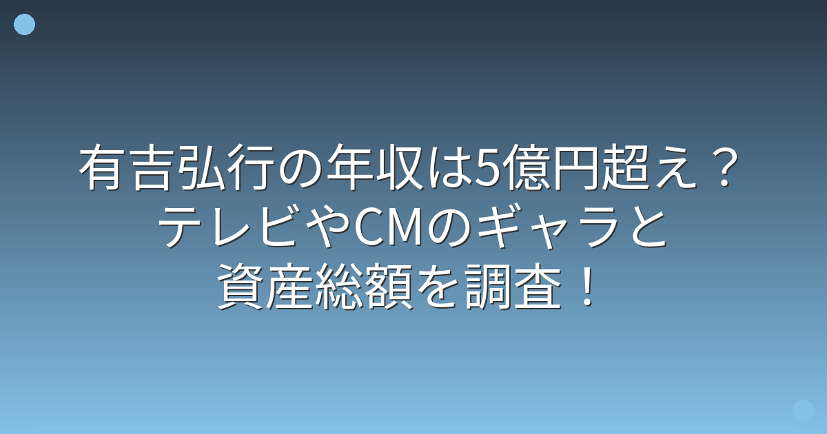 年収5億円を超えると言われる有吉弘行さんですが、これまでに蓄積した資産総額も気になるところです。