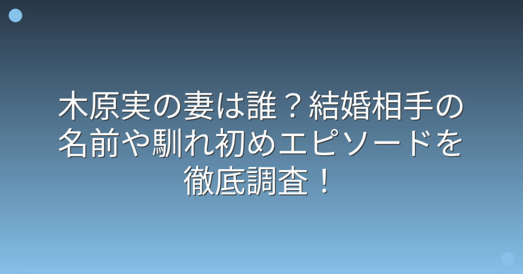 木原実の妻は誰?結婚相手の名前や馴れ初めエピソードを徹底調査!