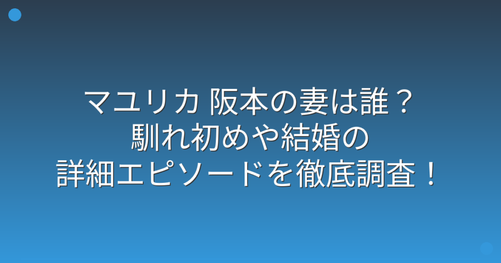 音楽ユニット「マユリカ」のメンバーである阪本さんの妻について、ファンの間で話題になっていますね。 阪本さんは既婚者であることが知られていますが、一体どのような女性と結婚されたのか気になる方も多いのではないでしょうか。 そこで今回は、マユリ... -