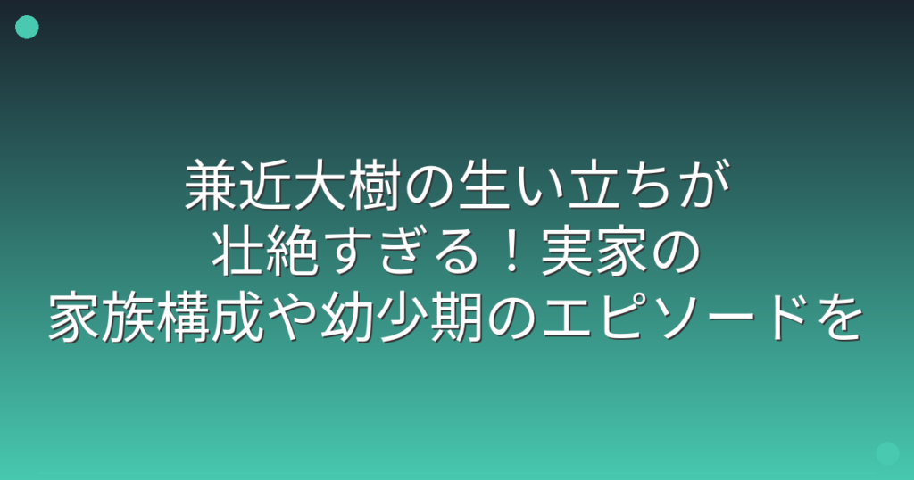 兼近大樹の生い立ちが壮絶すぎる!実家の家族構成や幼少期のエピソードを調査!