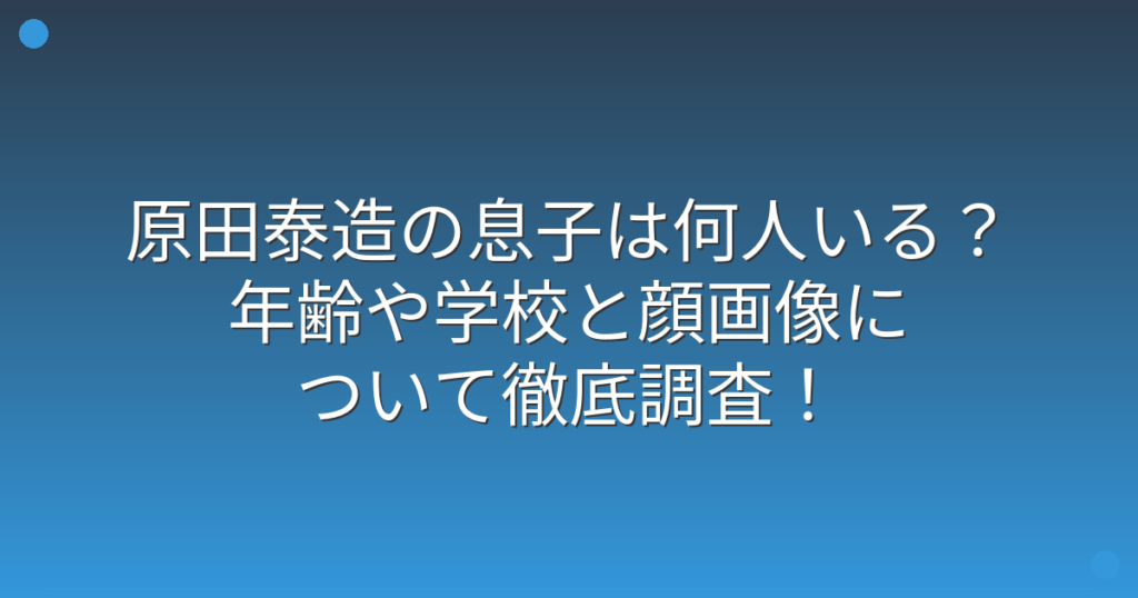 ネプチューンのメンバーとして、またバラエティ番組や俳優としても活躍する原田泰造さんですが、プライベートでは家族について話題になることがありますね。 特に原田泰造さんの息子について気になっている方も多いのではないでしょうか。 そこで今回は、...