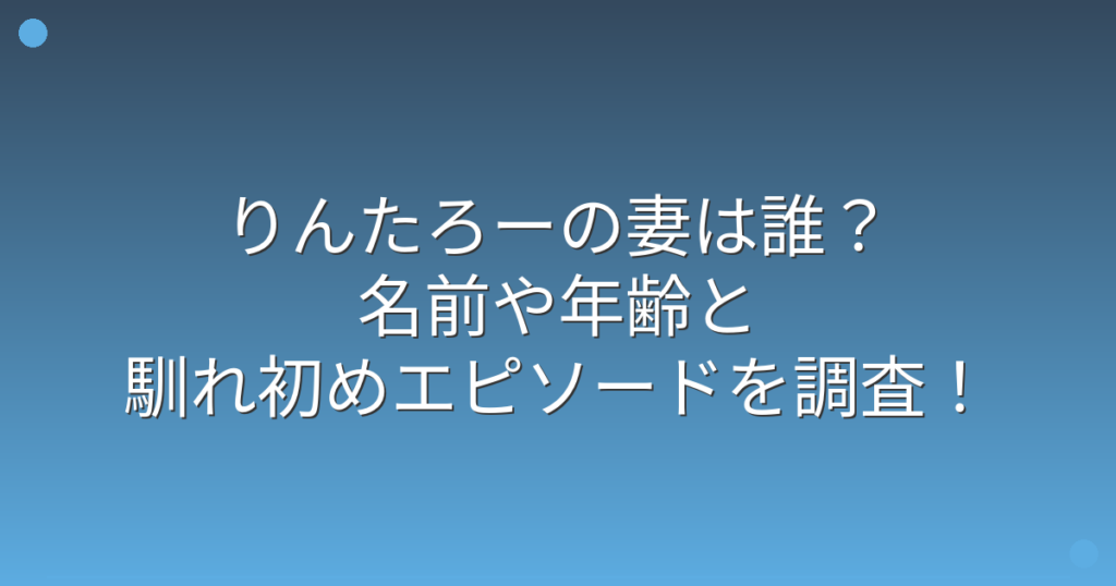 りんたろーの妻は誰?名前や年齢と馴れ初めエピソードを調査!