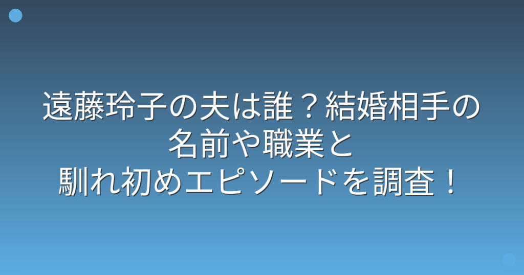 遠藤玲子の夫は誰?結婚相手の名前や職業と馴れ初めエピソードを調査!