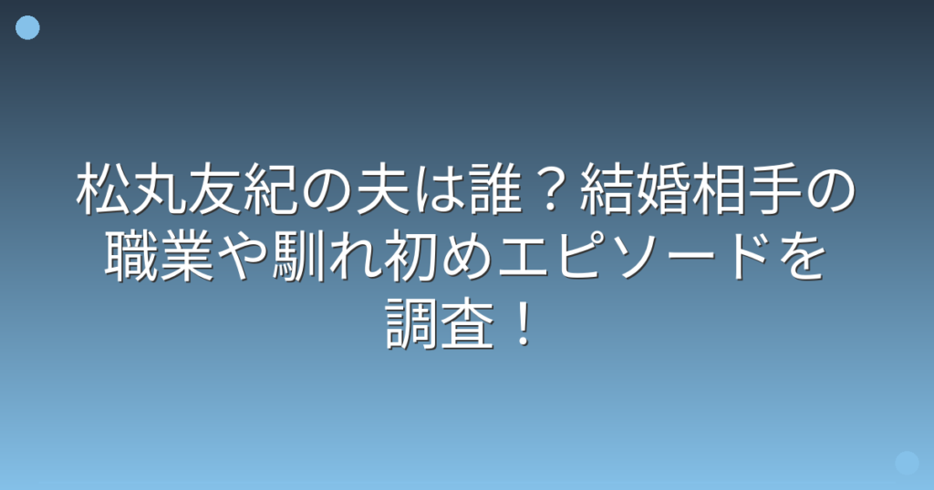 松丸友紀の夫は誰?結婚相手の職業や馴れ初めエピソードを調査!