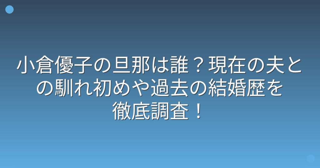 小倉優子の旦那は誰?現在の夫との馴れ初めや過去の結婚歴を徹底調査!