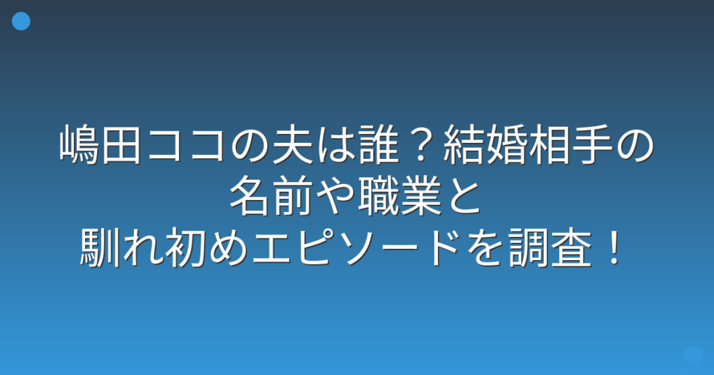 嶋田ココの夫は誰?結婚相手の名前や職業と馴れ初めエピソードを調査!