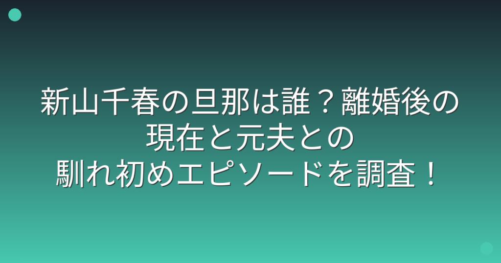 タレントの新山千春さんの旦那について、気になっている方が多いようですね。 新山千春さんは過去に結婚されていましたが、現在の状況はどうなっているのでしょうか。 そこで今回は、新山千春さんの旦那や元夫との馴れ初め、離婚後の現在について詳しく見... -