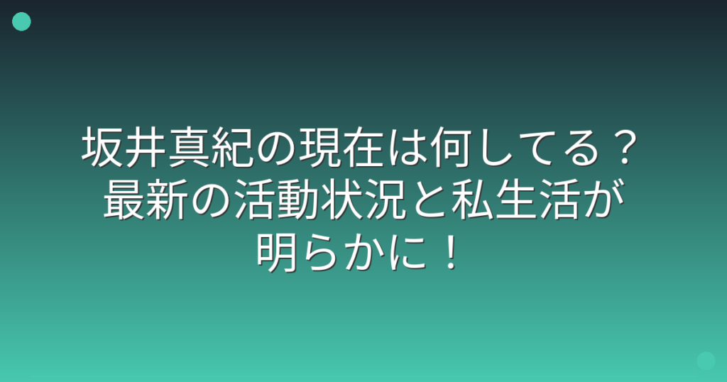女優の坂井真紀さんといえば、数々のドラマや映画で活躍されてきた実力派女優として知られていますね。 最近、坂井真紀さんの現在の活動について気になっているファンの方も多いのではないでしょうか。 そこで今回は、坂井真紀さんの現在の活動状況や最新... -