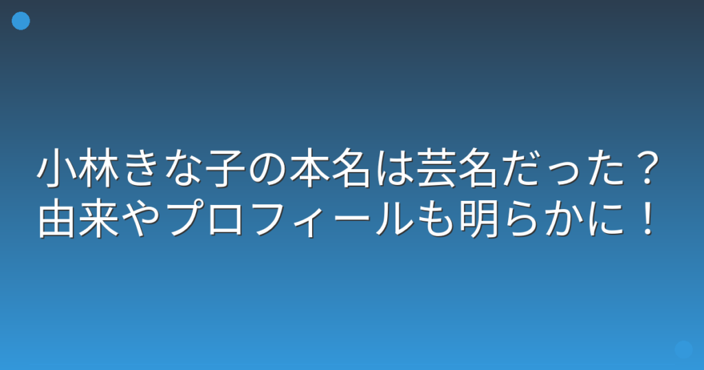 小林きな子の本名は芸名だった?由来やプロフィールも明らかに!