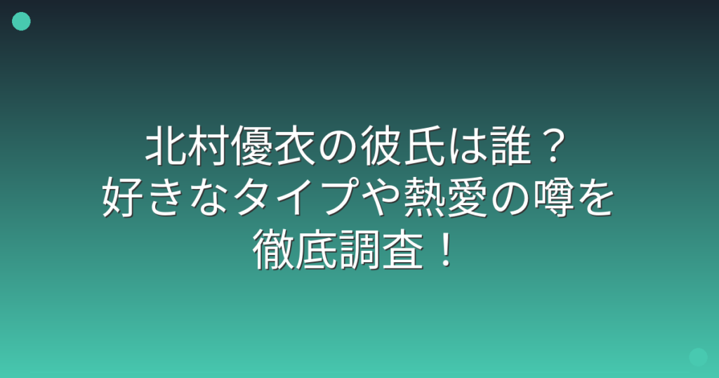 北村優衣の彼氏は誰?好きなタイプや熱愛の噂を徹底調査!