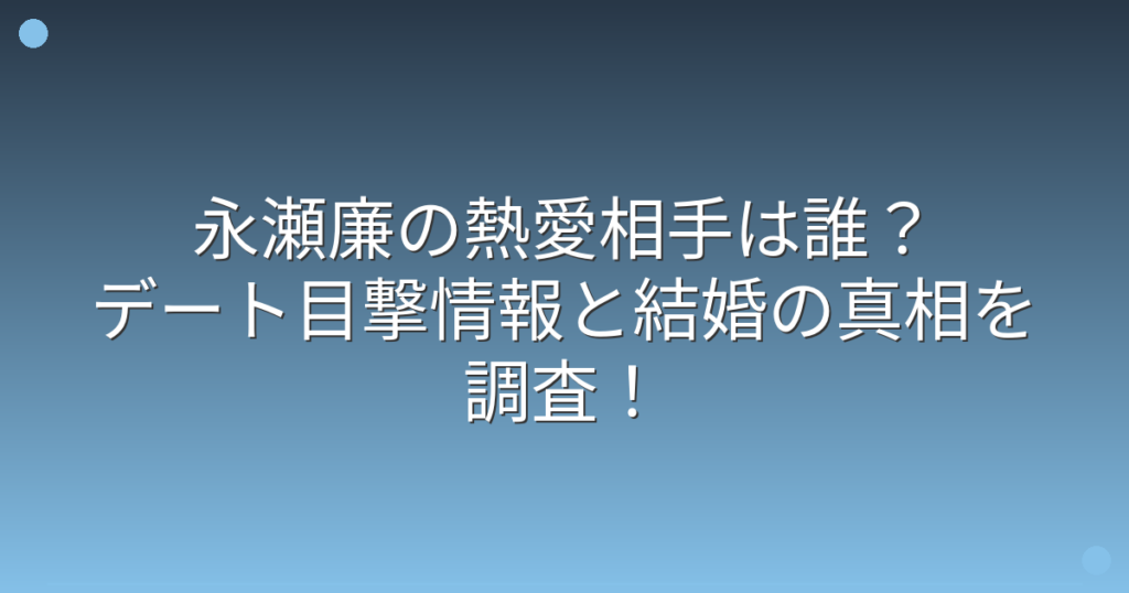 King & Princeのメンバーとして活躍する永瀬廉さんの熱愛が話題になっていますね。 アイドルとしてトップクラスの人気を誇る永瀬廉さんですが、熱愛相手やデート目撃情報について気になる方も多いのではないでしょうか。 そこで今回は、永瀬廉さんの熱愛相... -