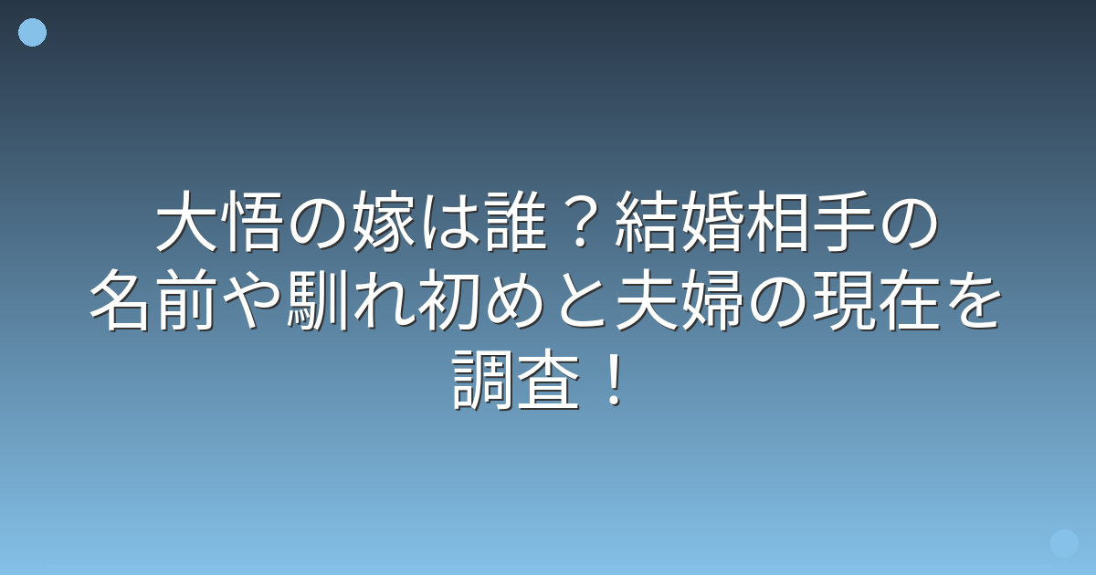 そこで今回は、大悟さんの嫁は誰なのか、結婚相手の名前や馴れ初め、夫婦の現在について詳しく見ていきましょう!
