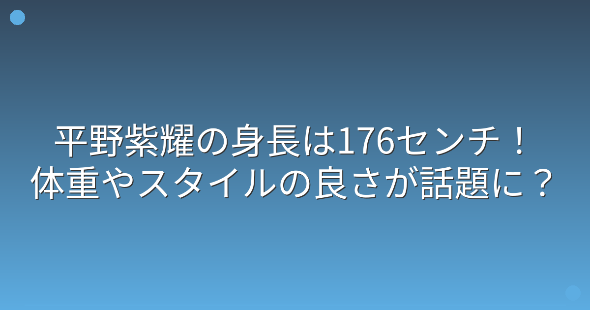 平野紫耀さんの体重については、公式には明らかにされていませんが、関係者の話では適正な体型を維持していると言われています。