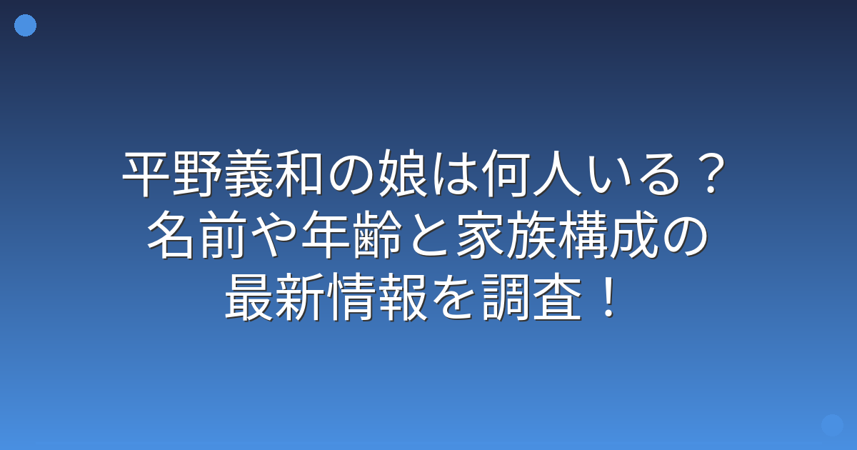 そこで今回は、平野義和さんの娘さんの人数や名前、年齢などの基本情報について詳しく見ていきましょう!