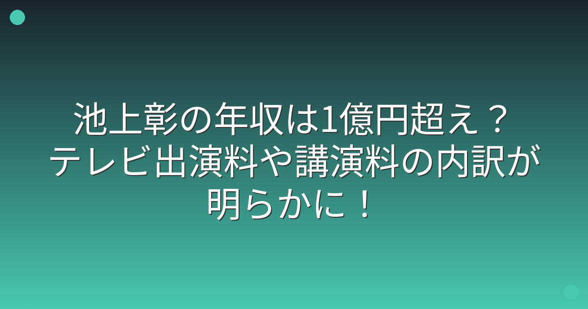 池上彰さんの年収は、複数のメディアによると推定1億円から2億円レベルとされています。