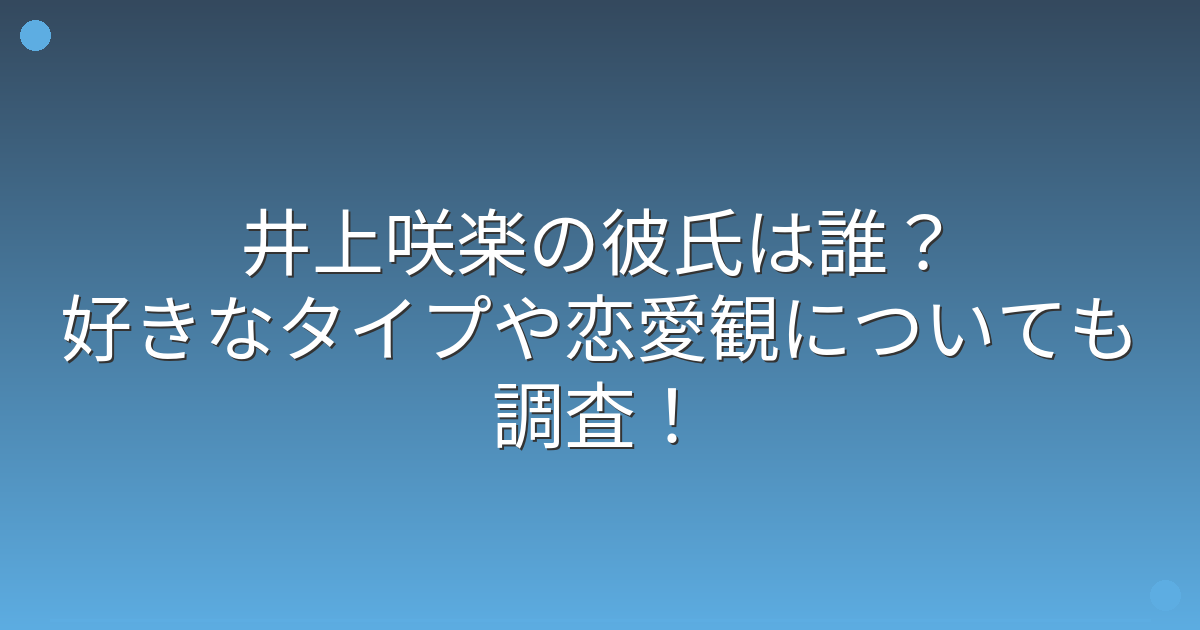 今後、井上咲楽さんの恋愛事情に何か動きがあれば、ファンの間でも大きな話題になることでしょう。