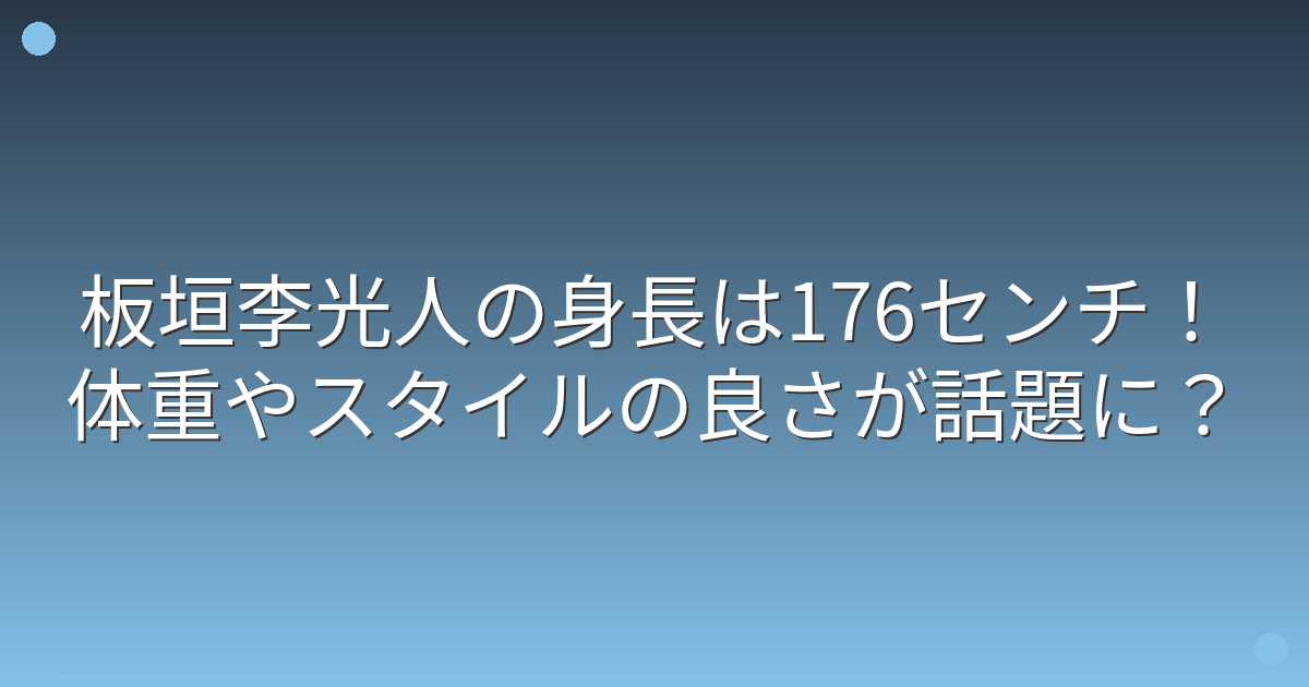 板垣李光人さんの身長は176センチで、体重は60キロ前後と言われており、非常にバランスの取れた体型をしています。