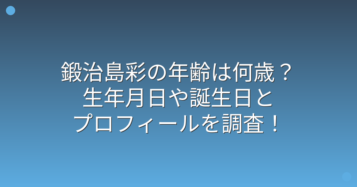 注目を集めている鍛治島彩さんですが、実際の年齢や生年月日が気になっている方も多いのではないでしょうか。