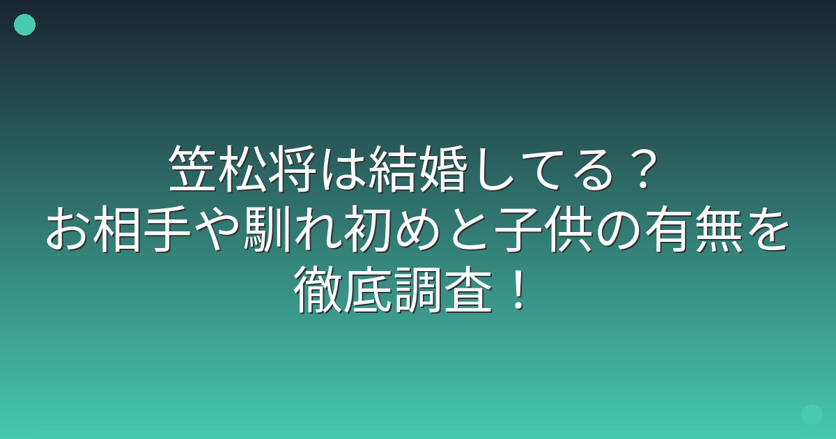 笠松将は結婚してる?お相手や馴れ初めと子供の有無を徹底調査!