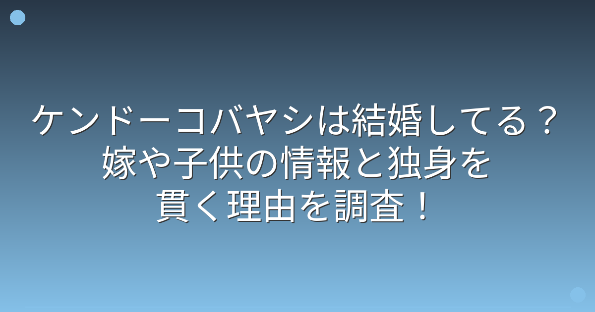 結論から申し上げますと、ケンドーコバヤシさんは現在も独身です。