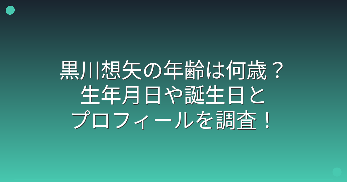 そこで今回は、黒川想矢さんの年齢や生年月日、プロフィールについて詳しく見ていきましょう!