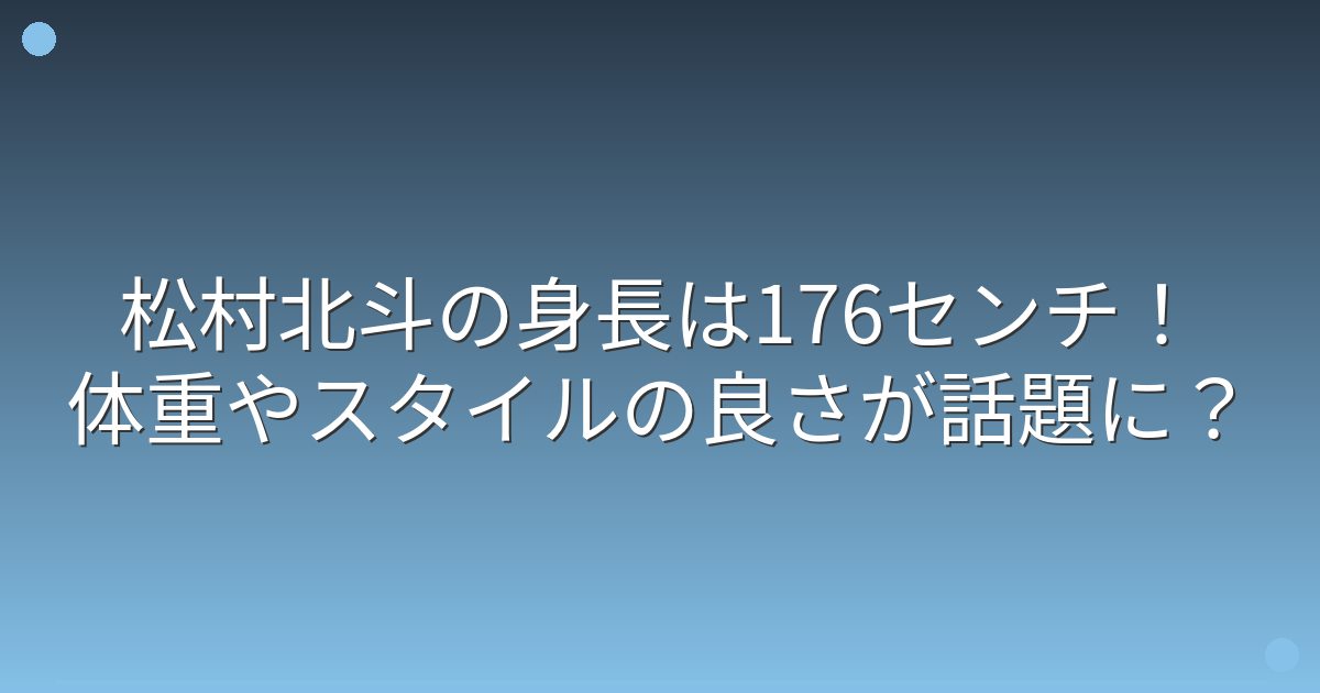 今回は、松村北斗さんの身長や体重、スタイルの特徴について、分かりやすくご紹介していきます。