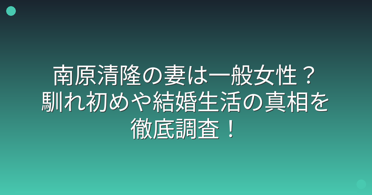 特に南原清隆さんの妻について気になっている方も多いのではないでしょうか。