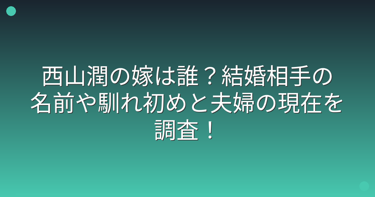 西山潤さんの嫁について、まず気になるのは結婚相手が誰なのかという点ですよね。