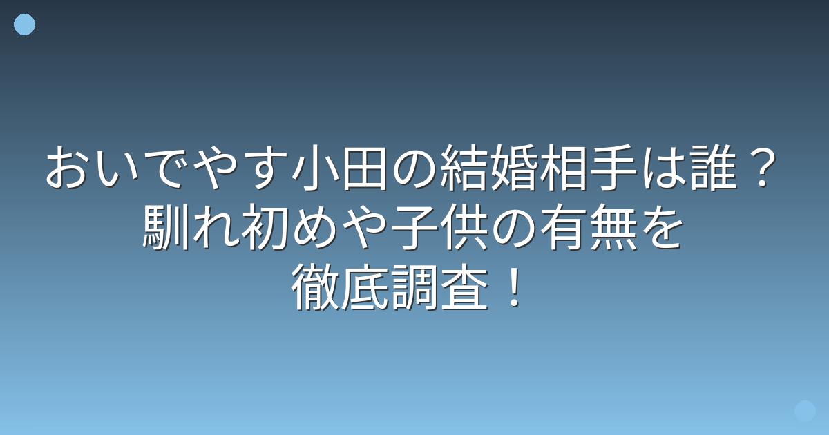 そこで今回は、おいでやす小田さんの結婚相手や馴れ初め、子供の有無について詳しく見ていきましょう!