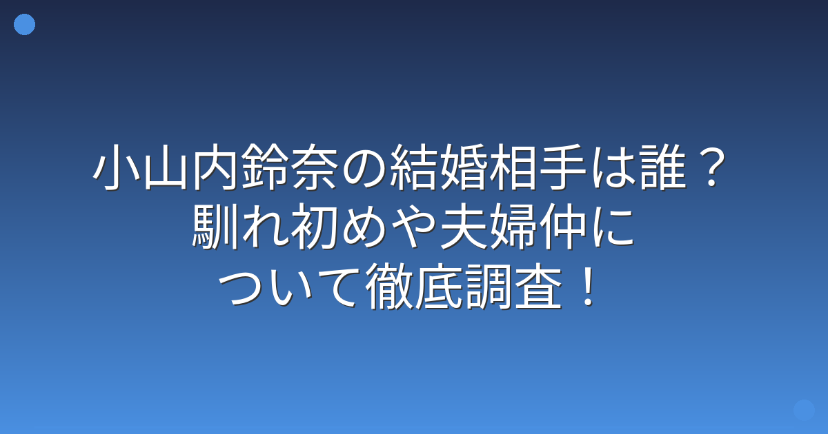 小山内鈴奈の結婚相手は誰?馴れ初めや夫婦仲について徹底調査!