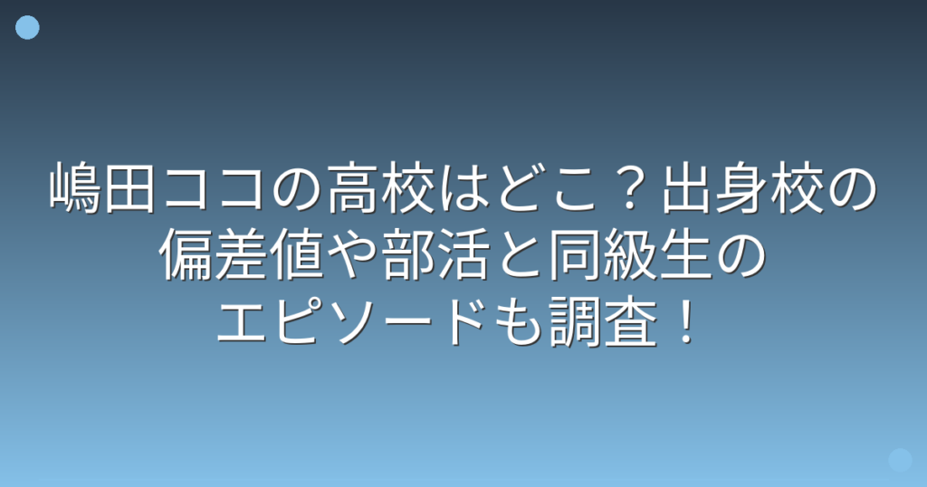 嶋田ココの高校はどこ?出身校の偏差値や部活と同級生のエピソードも調査!