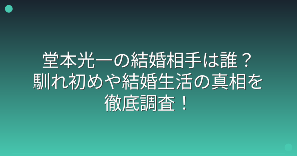 堂本光一の結婚相手は誰?馴れ初めや結婚生活の真相を徹底調査!