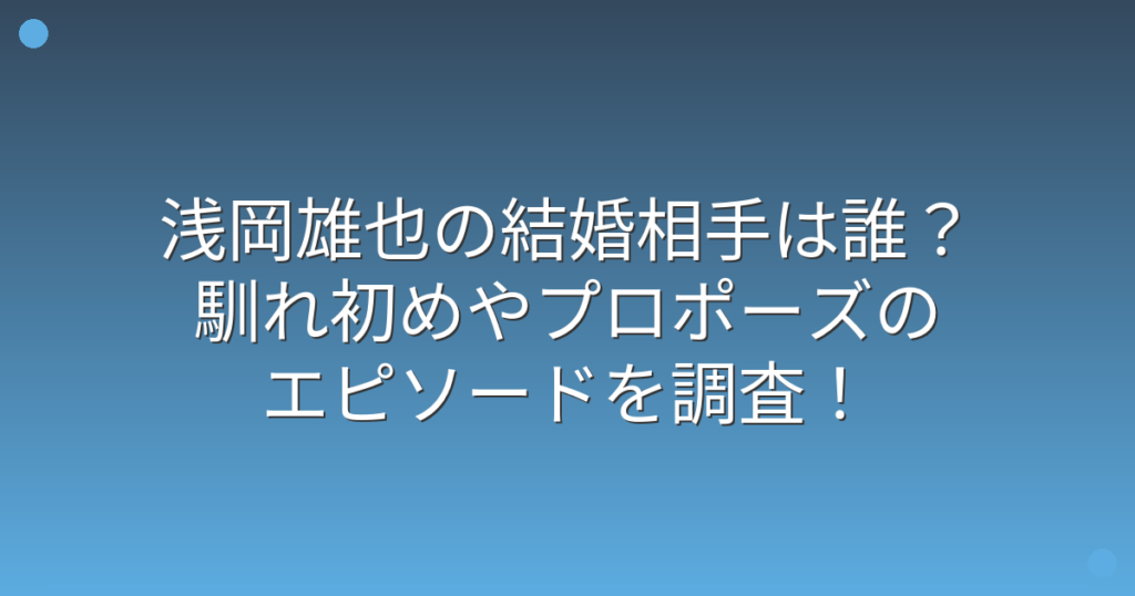 浅岡雄也の結婚相手は誰?馴れ初めやプロポーズのエピソードを調査!