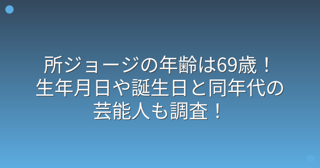 所ジョージの年齢は69歳!生年月日や誕生日と同年代の芸能人も調査!