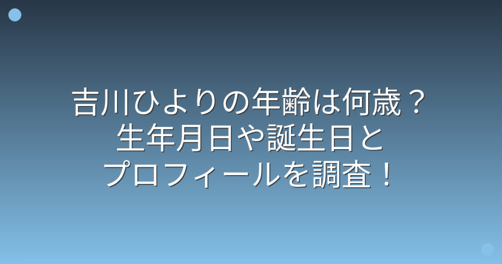 吉川ひよりの年齢は何歳?生年月日や誕生日とプロフィールを調査!