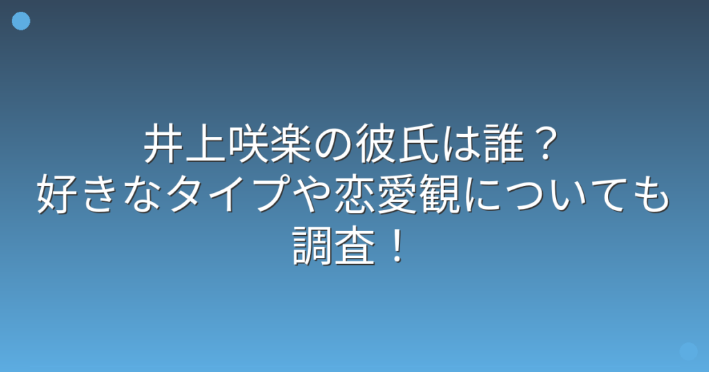 井上咲楽の彼氏は誰?好きなタイプや恋愛観についても調査!