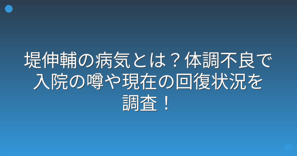 堤伸輔の病気とは?体調不良で入院の噂や現在の回復状況を調査!
