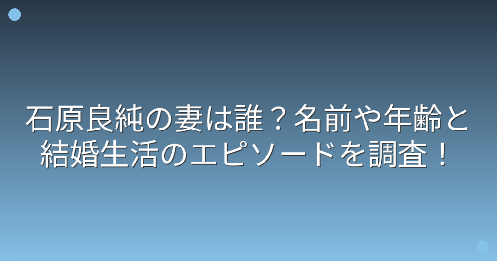 気象予報士としてテレビで活躍する石原良純さんですが、プライベートについてはあまり語られることがありません。 そんな石原良純さんの妻について、ファンの間で話題になっていますね。 そこで今回は、石原良純さんの妻は誰なのか、名前や年齢、そして結... -