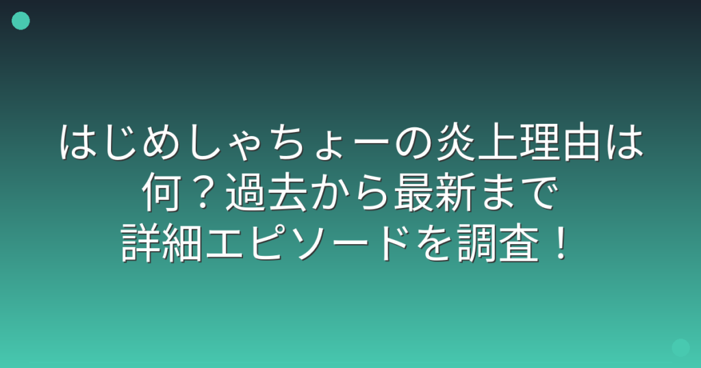 人気YouTuberのはじめしゃちょーさんが炎上したという話題が、ファンの間で度々注目されていますね。 日本トップクラスのチャンネル登録者数を誇る彼ですが、これまでに何度か炎上騒動に巻き込まれてきました。 そこで今回は、はじめしゃちょーさんの炎上... -
