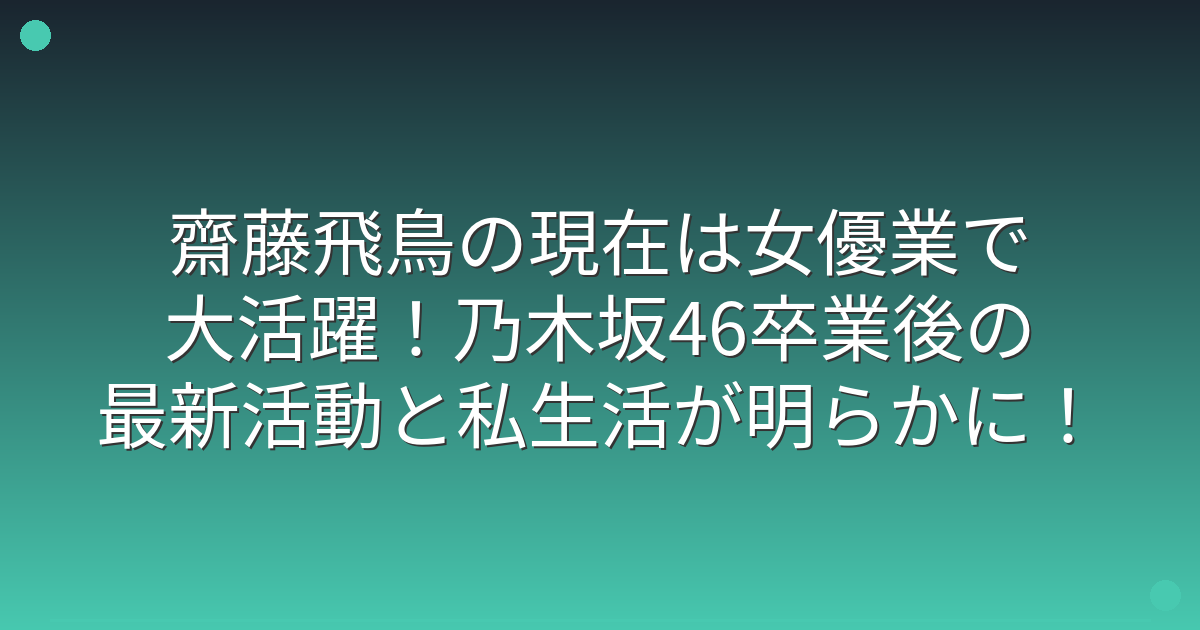 今回は、齋藤飛鳥さんの現在の活動状況や最新の仕事内容、そして私生活についてお伝えしてきました。