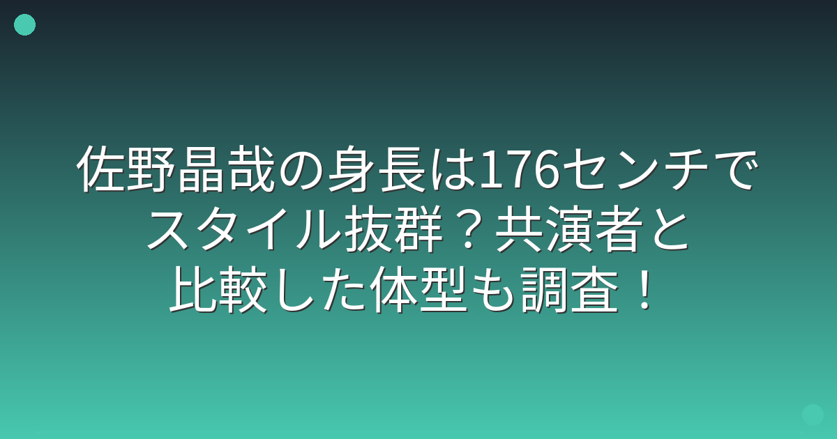 佐野晶哉の身長は176センチでスタイル抜群?共演者と比較した体型も調査!