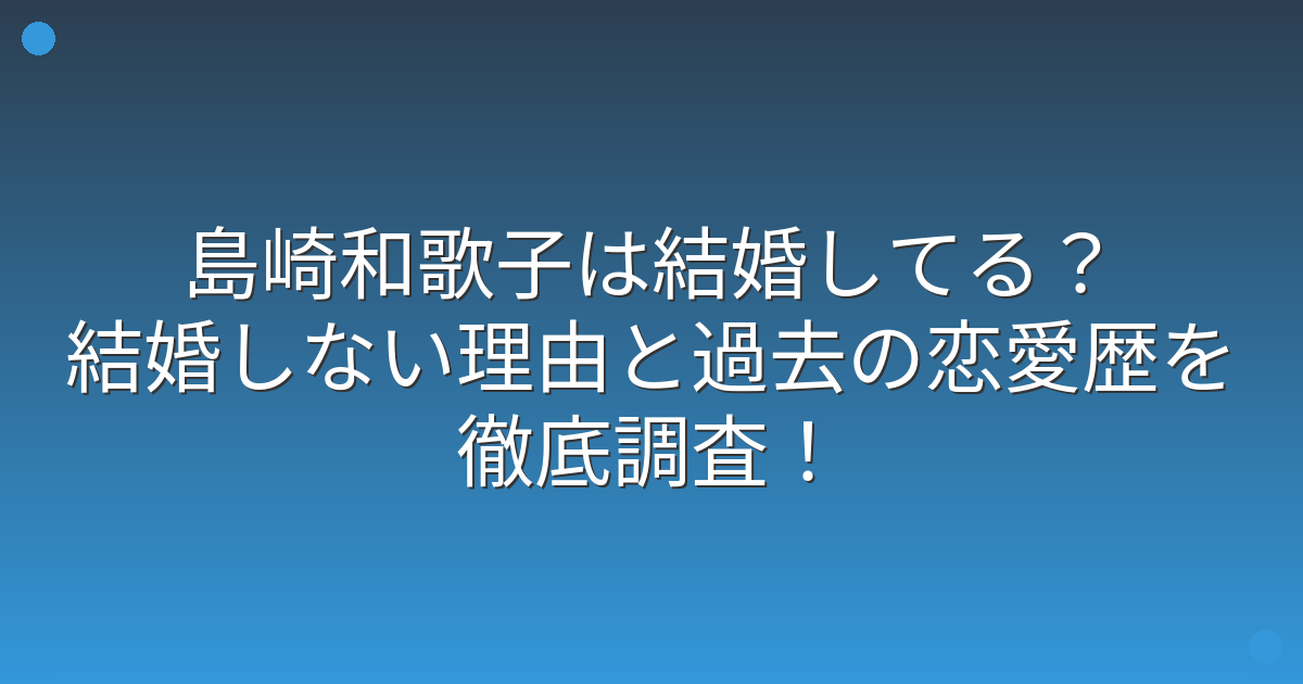 そこで今回は、島崎和歌子さんの結婚の有無や結婚しない理由、過去の恋愛歴について詳しく見ていきましょう!