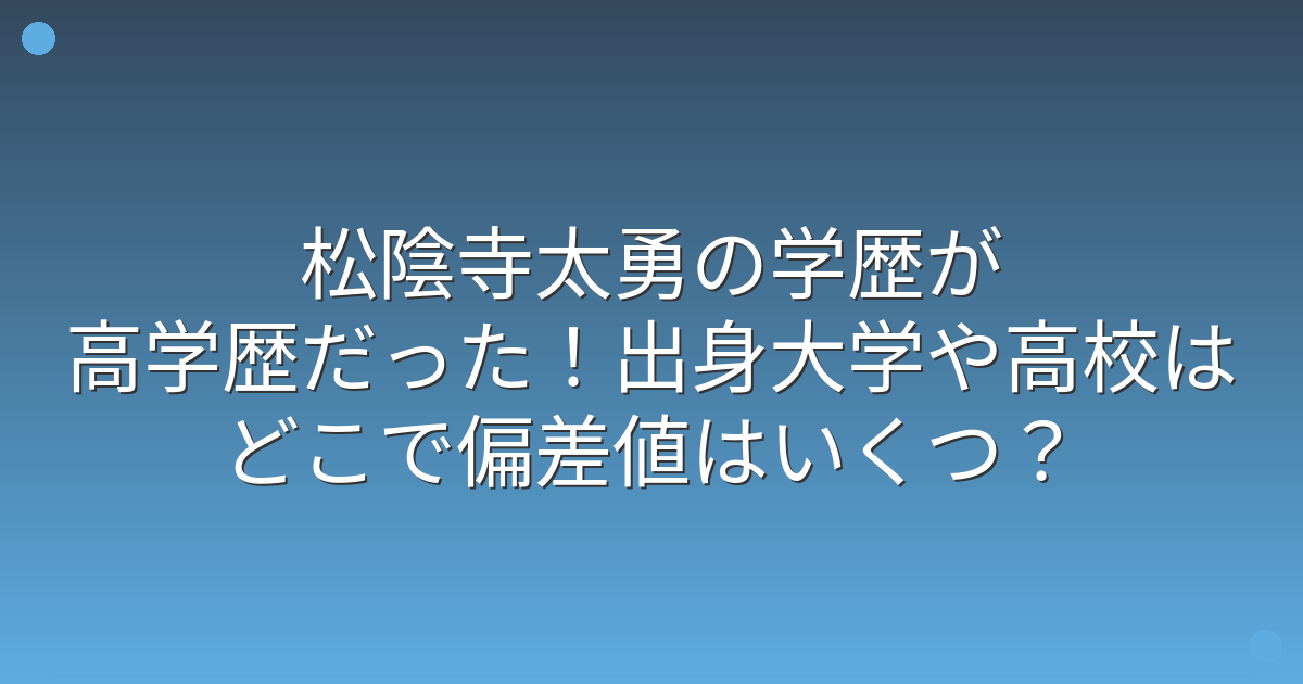 松陰寺太勇の出身高校と偏差値は?