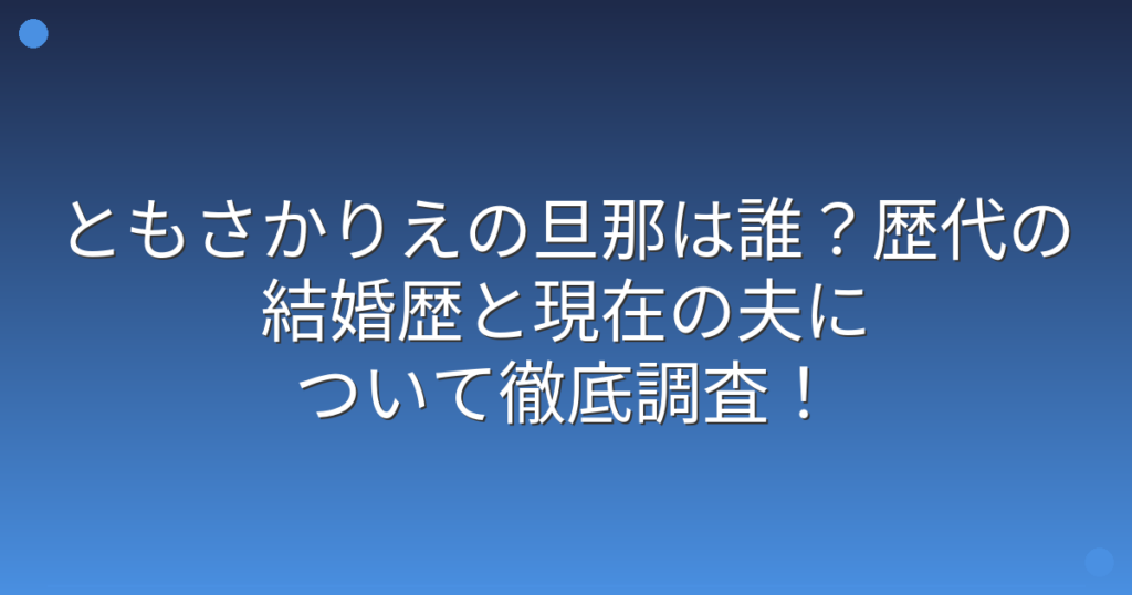女優として長年活躍を続けているともさかりえさんについて、「現在の旦那はどんな人?」「これまでの結婚歴は?」と気になっている方も多いようです。 これまでの結婚や家族に関する情報は、断片的に語られることが多く、改めて整理して知りたいという声も...