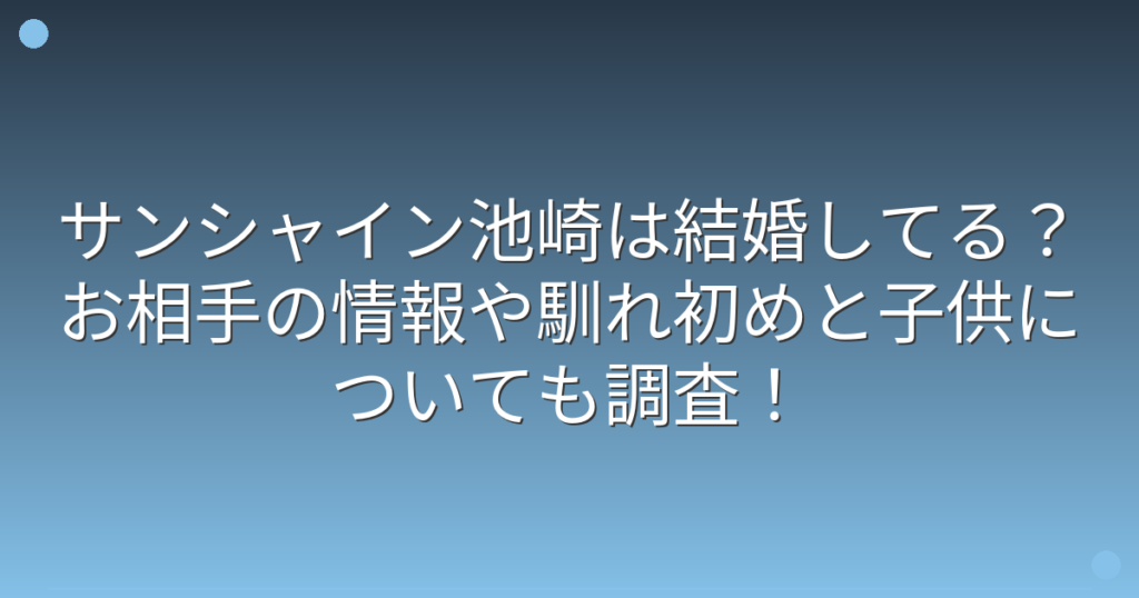 サンシャイン池崎は結婚してる?お相手の情報や馴れ初めと子供についても調査!