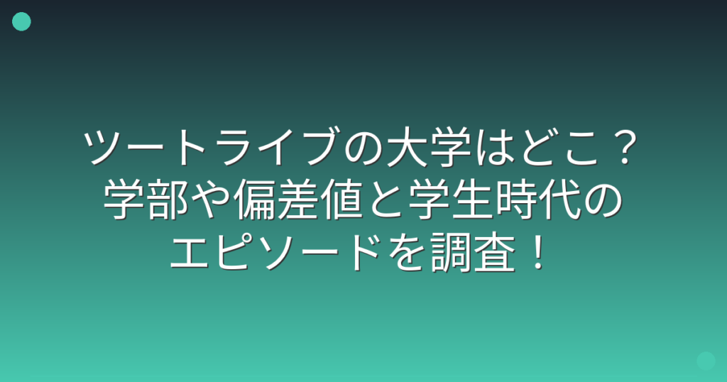 ツートライブの大学はどこ?学部や偏差値と学生時代のエピソードを調査!